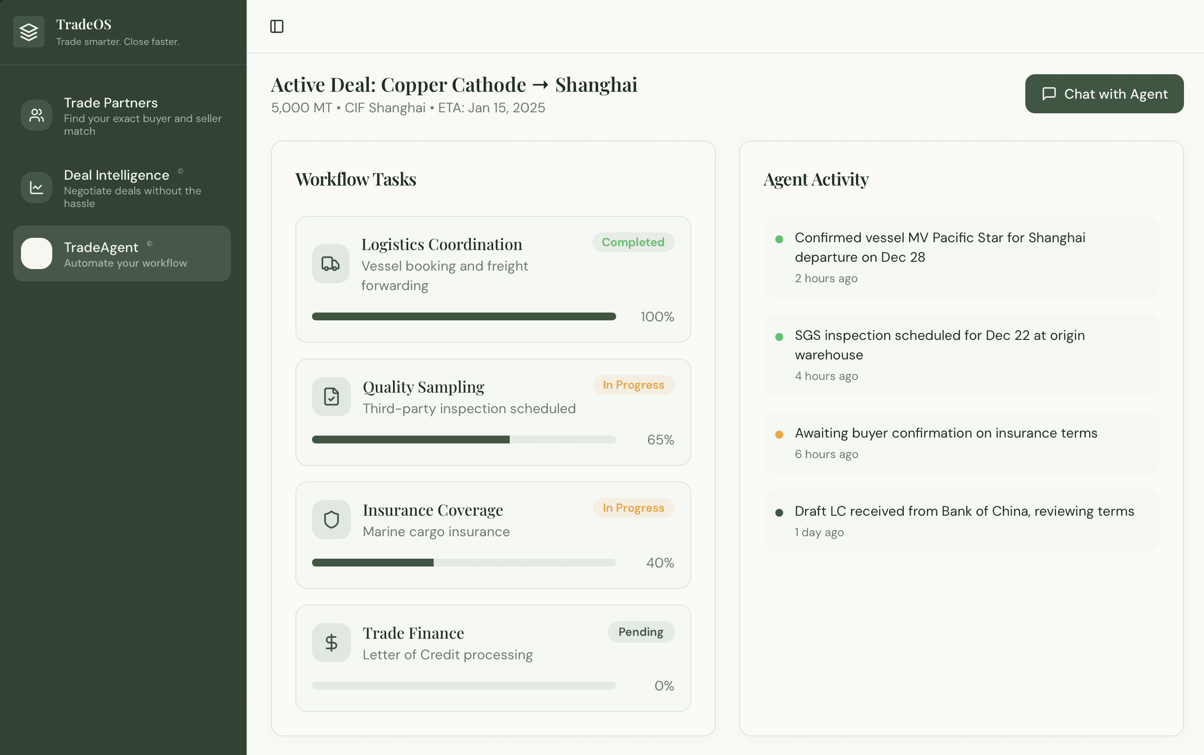Prefer to keep things in WhatsApp and email? No problem. Deal Intelligence© and TradeAgent© are embedded directly into your workflow, from spreadsheets to email. No switching costs required.